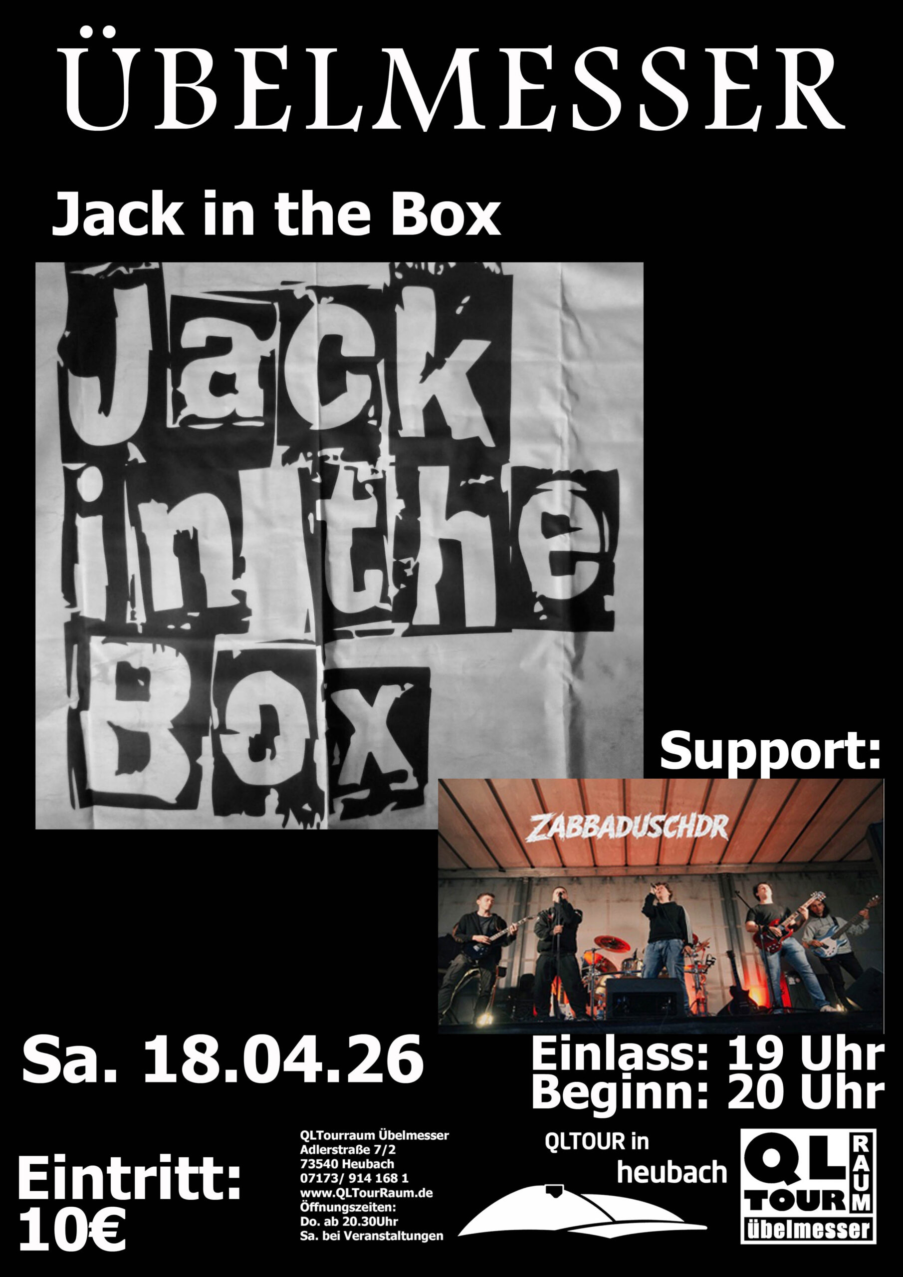 Jack in the Box Die neuen „Alten“ Helden geben ein Konzert mit ihren Lieblingssongs. In der Club Lounge der Silberwarenfabrik begeisterten sie das Heubacher Publikum bereits in der Spätschicht 2025. Es sind die alten Hasen von „Emma D.“ ,“Wild Thing“, „Hazy and the Babydolls“ und „Isa and Friends“ die gemeinsam in dem neuen Projekt …